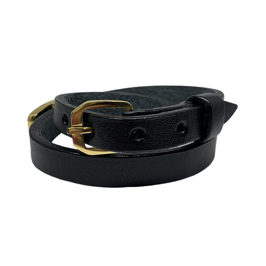 Black Leather Tourmalinated Quartz Snap Bracelet