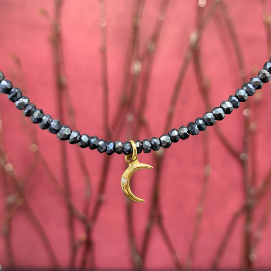 Spinel "Diamond Coated" Bead Moon Charm Necklace - Bronze