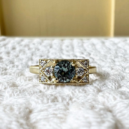 Vintage Inspired Montana Sapphire & Diamond Ring