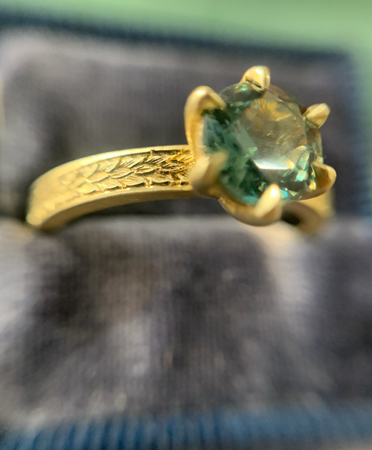 Montana Sapphire Gold Engraved Ring