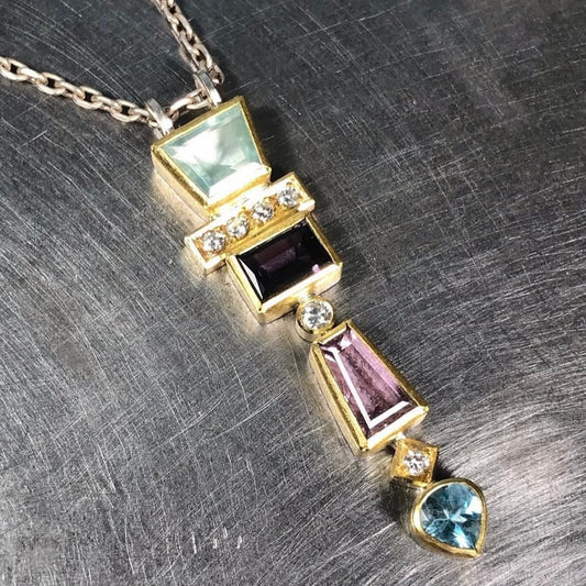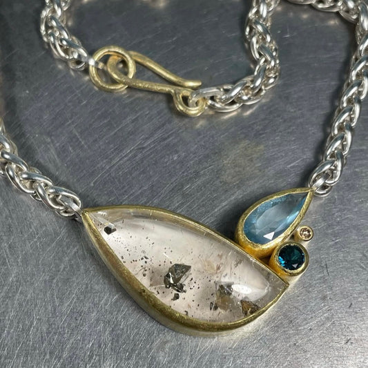 Pyrite Quartz, Aqua, Tourmaline & Diamond Necklace