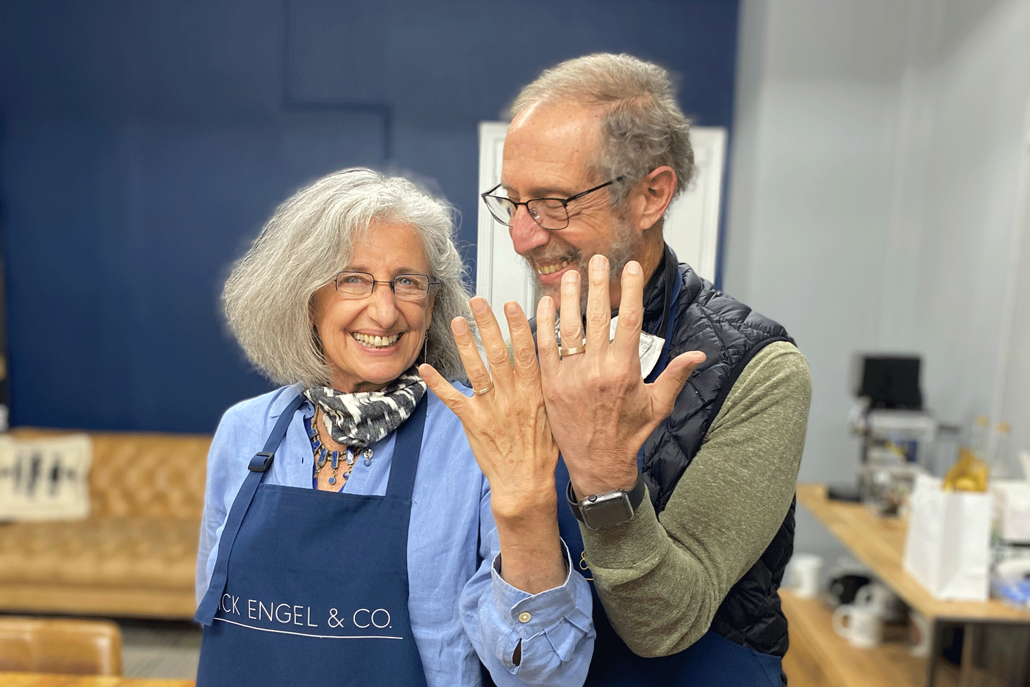 From a selection of gold and platinum, our jewelers will guide you as you create gorgeous wedding bands for each other while learning the basics of metalsmithing — from sawing and shaping to soldering and finishing. We'll take tons of photos during your hands-on jewelry-making experience as you use hammers, saws, files and torches to create two stunning bands that complement your love story.