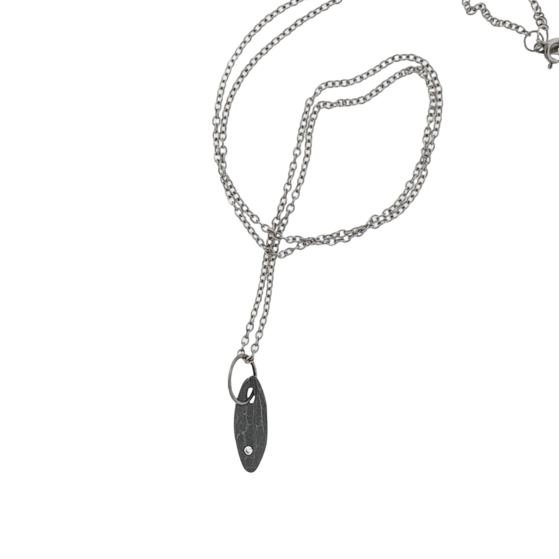Oxidized sterling silver hand carved amylum star pendant with flush set 1.2mm diamond on oxidized sterling silver 18" chain.