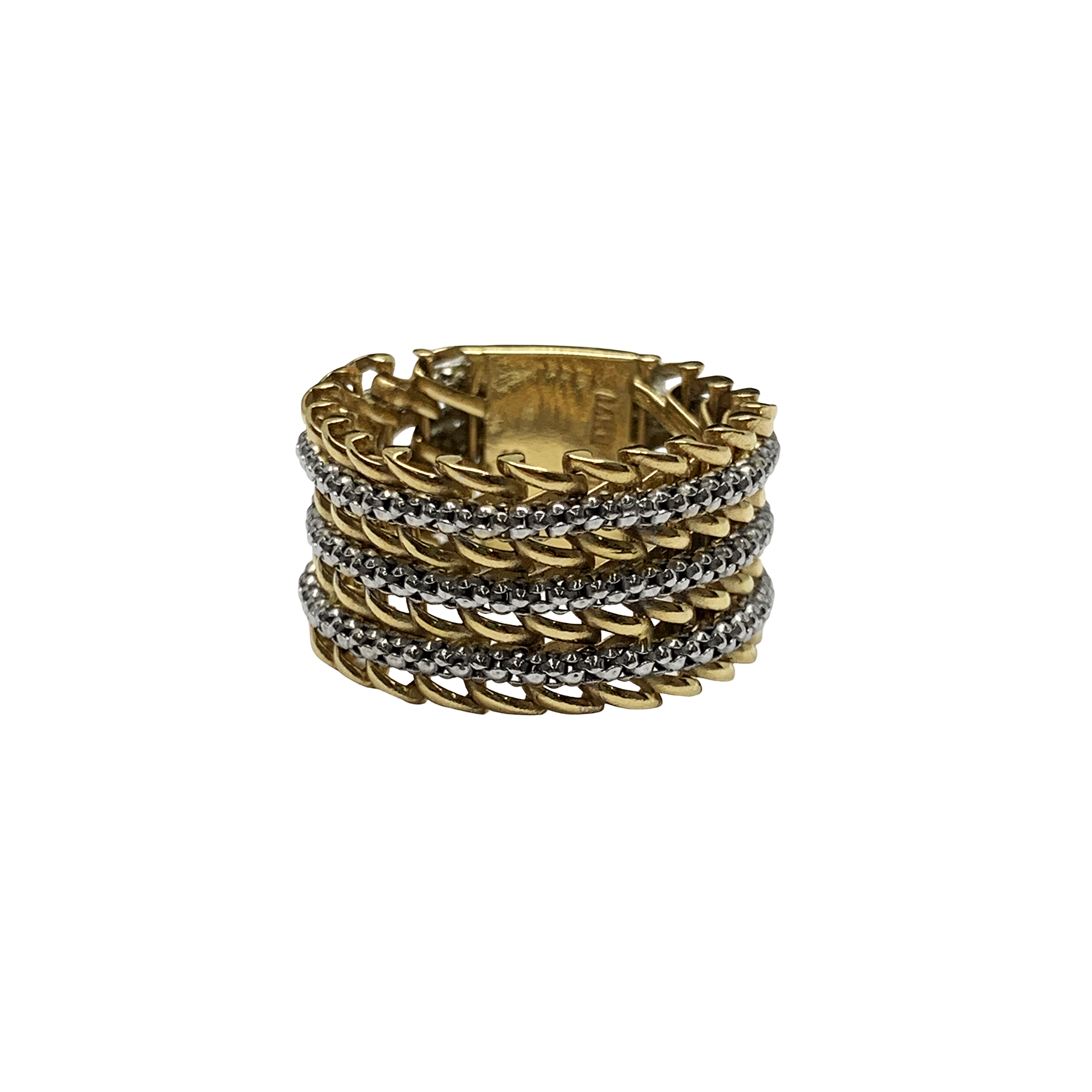 14k white and yellow gold wide band Italian ring. D. Tenenbaum, Inc.