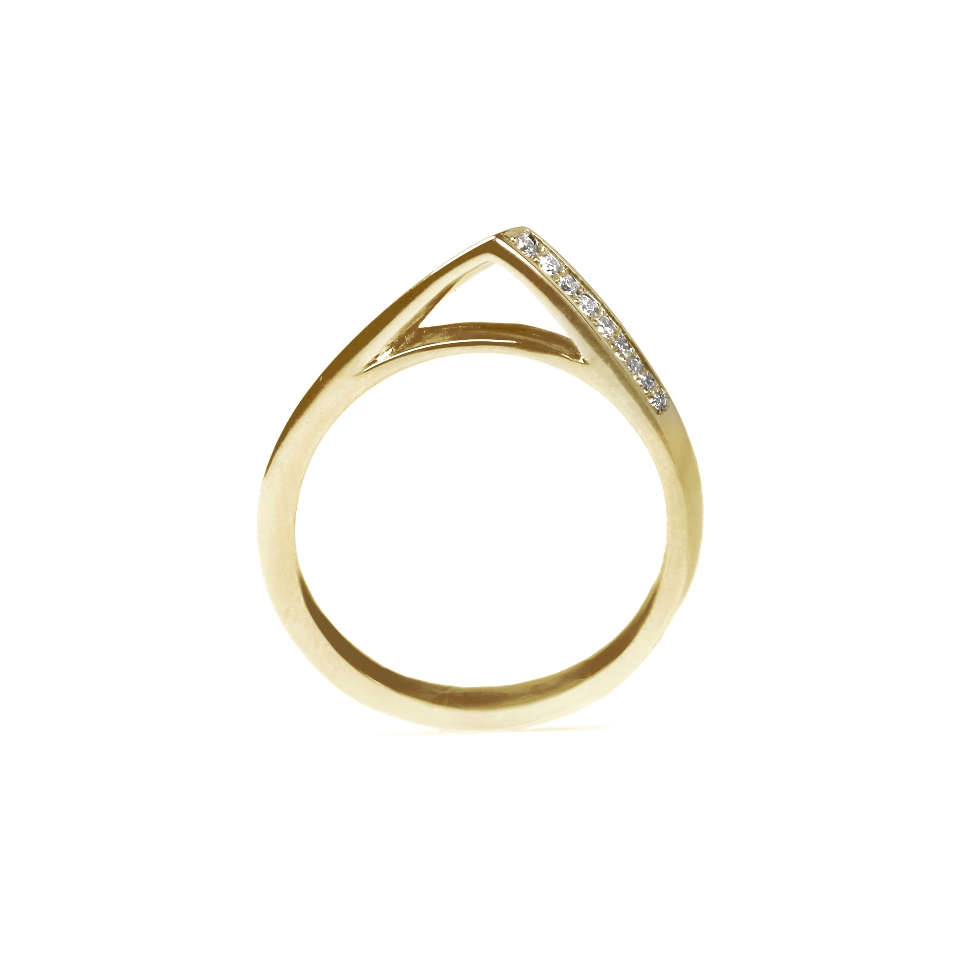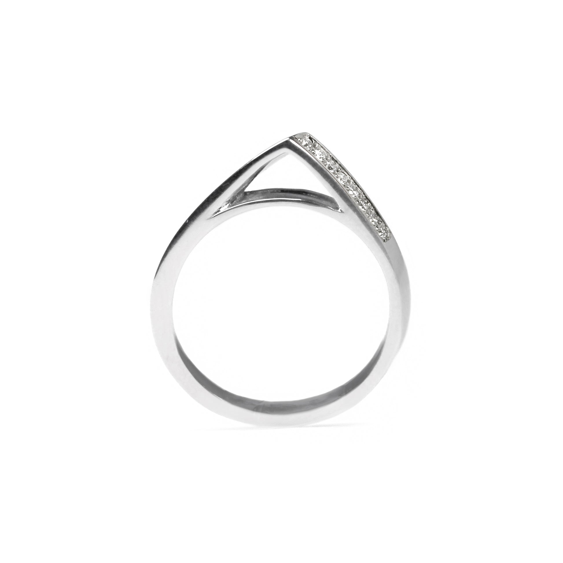 Our signature Apex band features sexy lines, negative space, and a striking peak. A subtle twist and a splash of sparkle completes this stunning band.