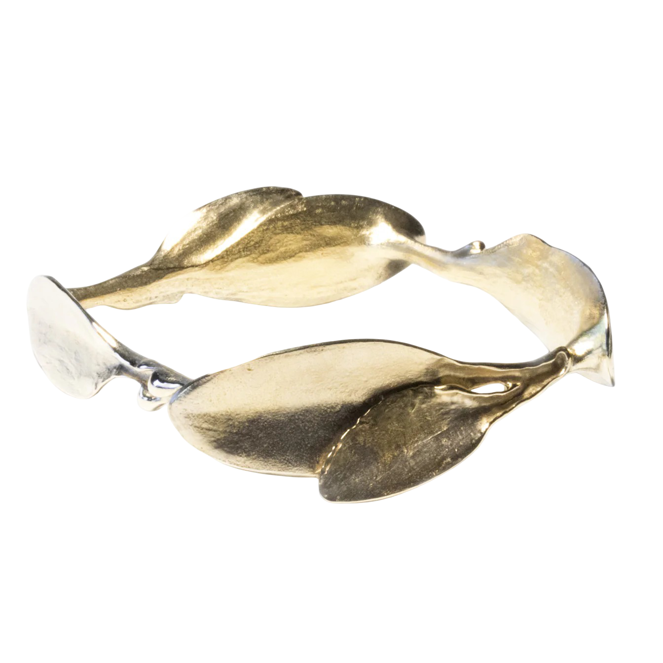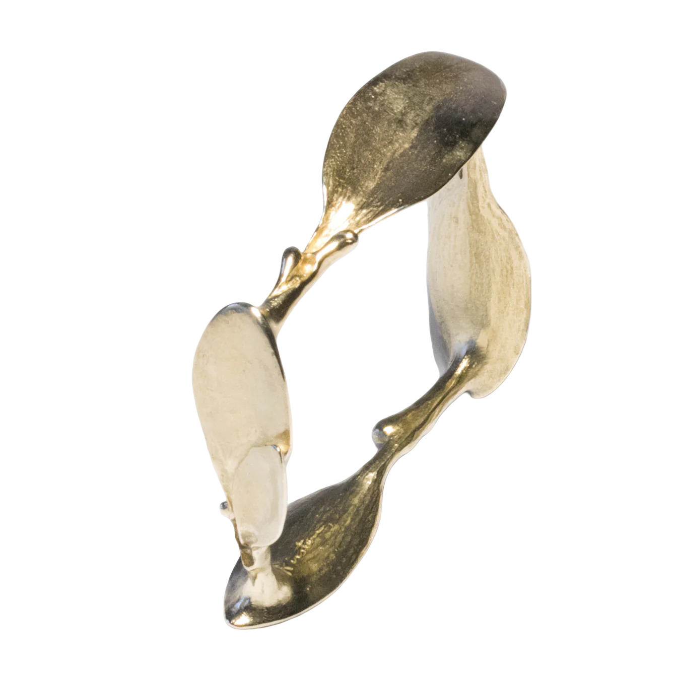 The unique shape of the Square Leaves bracelet feels like you're wearing a small sculpture. The brushed yellow bronze finish has a silky texture and the smooth, high-polished edges add a nice contrast. Wear this bracelet low like a bangle or push it up on the arm where the square shape feels secure and comfortable. Especially when writing or typing, wearing an upper arm style makes sense!