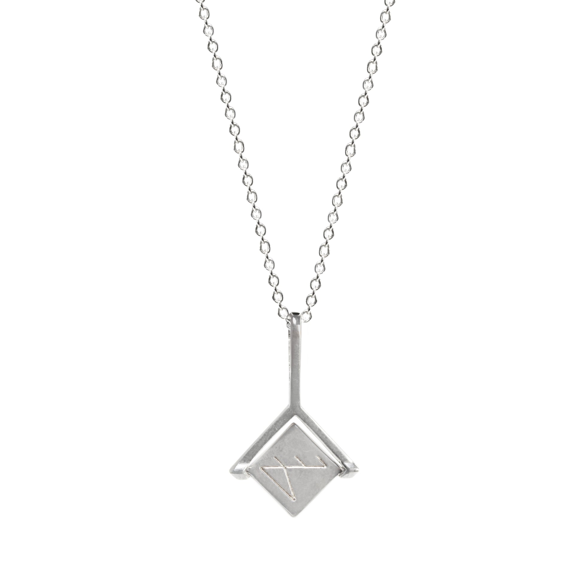 Perfect for layering. Made for everyday. Celebrate negative space, clean lines and playful mechanics with this artful pendant. Spin this sweet pendant for a secret diamond illustration!