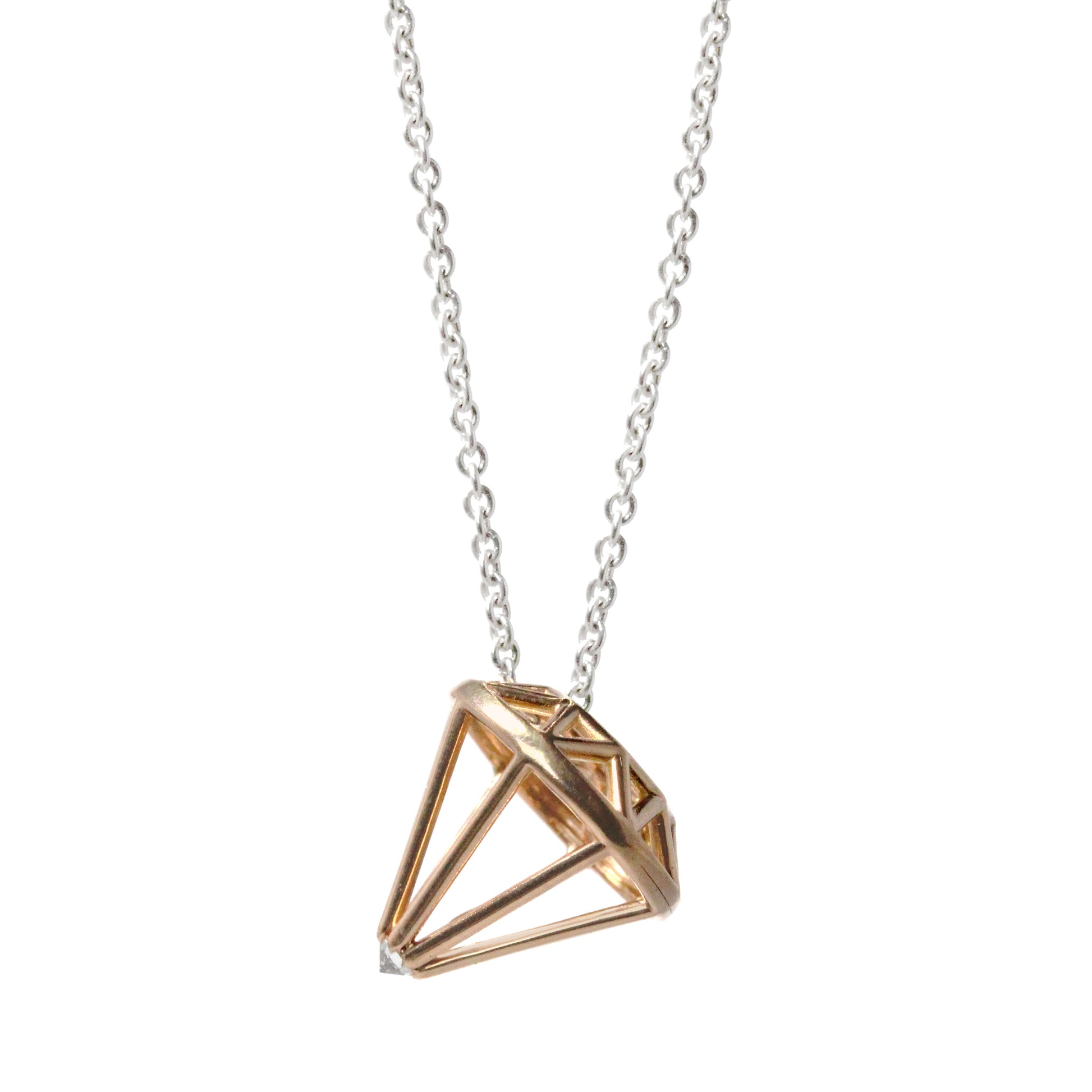 Wear diamonds differently. This striking gold diamond shape features a white diamond culet, offering sparkle and drama. Hanging on a sterling silver 30" chain, this geometric stunner layers beautifully.
