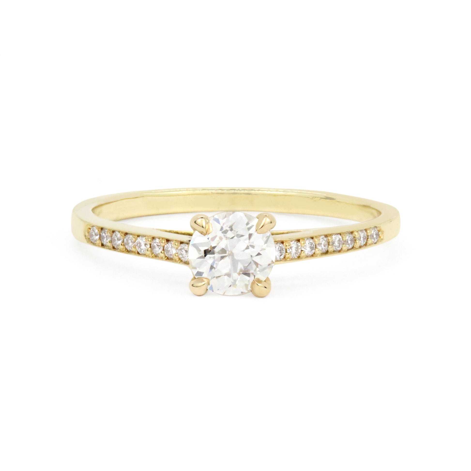 Nick's classic Apex setting crafted in 18k yellow gold, featuring a stunning diamond center and shoulders.