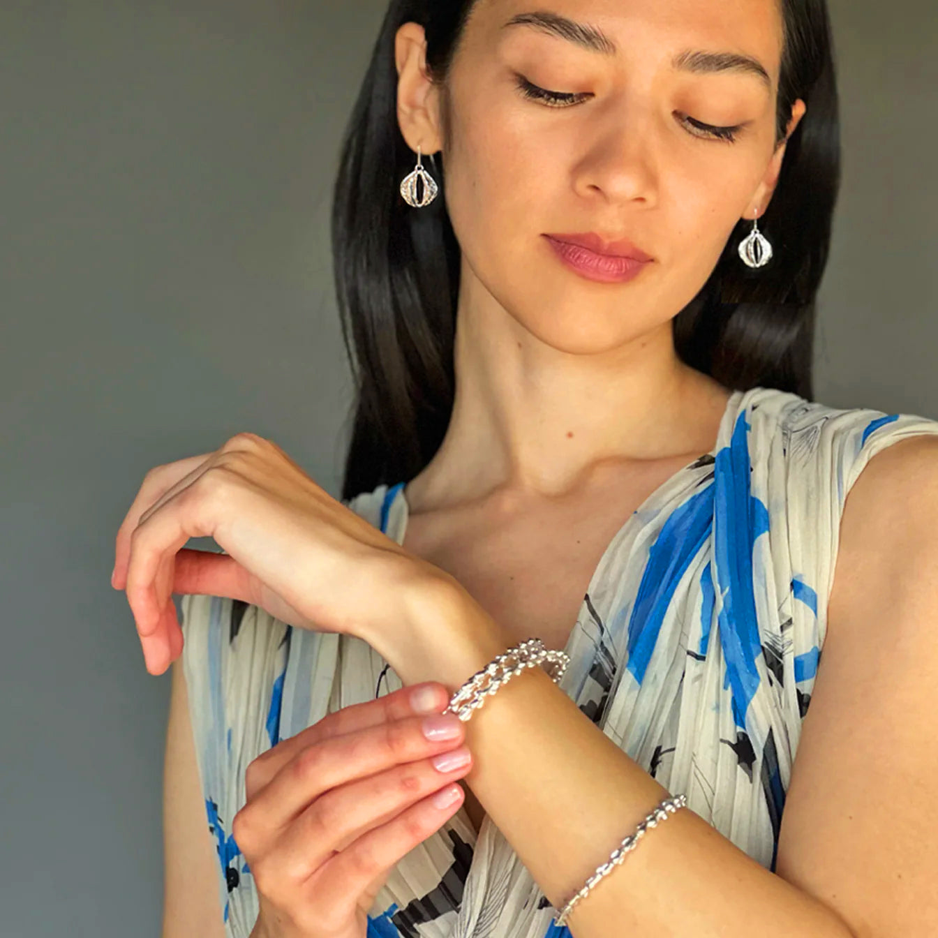 These light and airy dangle earrings stand out for their eye-catching composition. They are loosely inspired by the shape of the Lantern Plant. These lanterns hang delicately from ear wires, providing subtle movement. Their textured surface picks up and reflects the light beautifully as they sway.