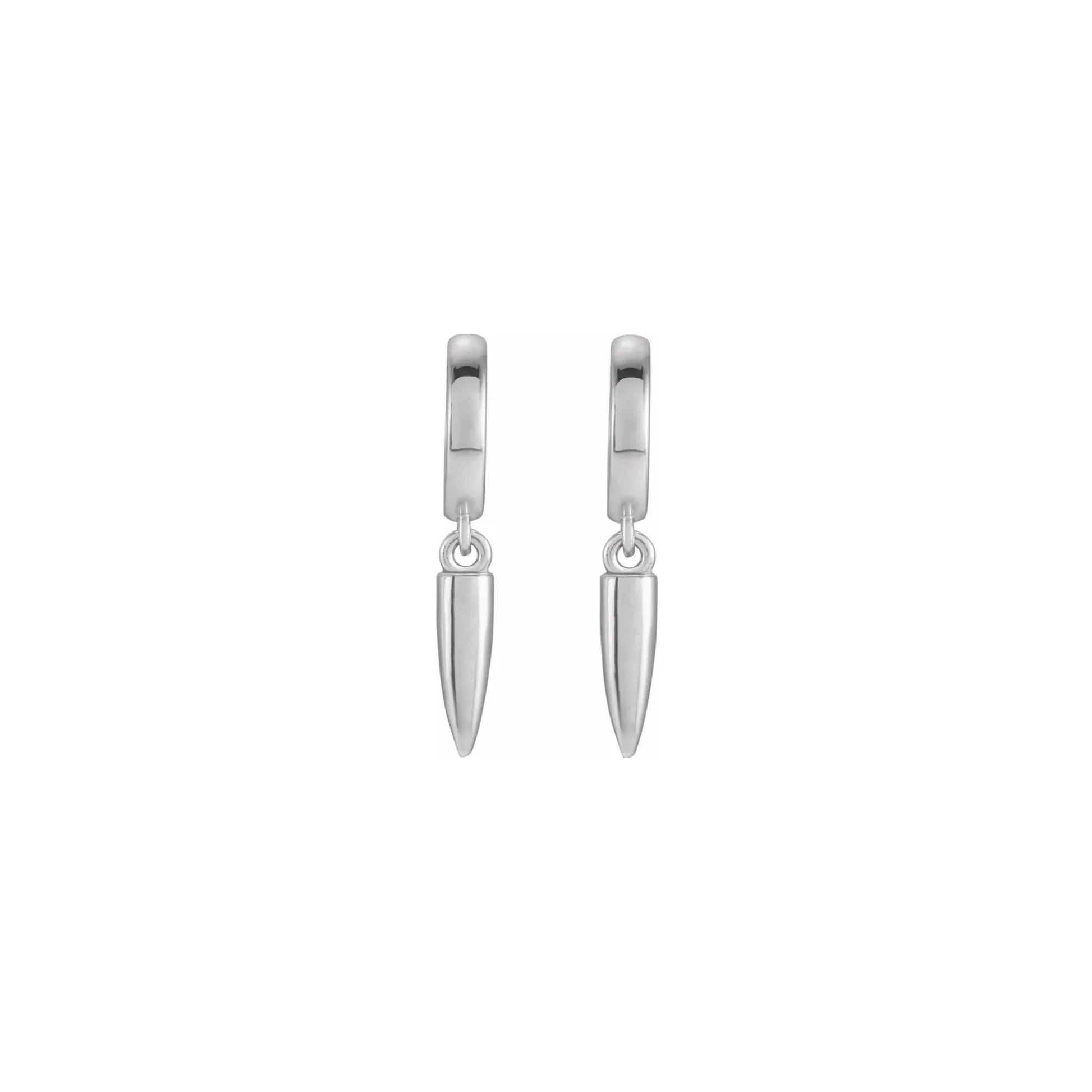 Sterling silver huggie hoops with dangling spikes.