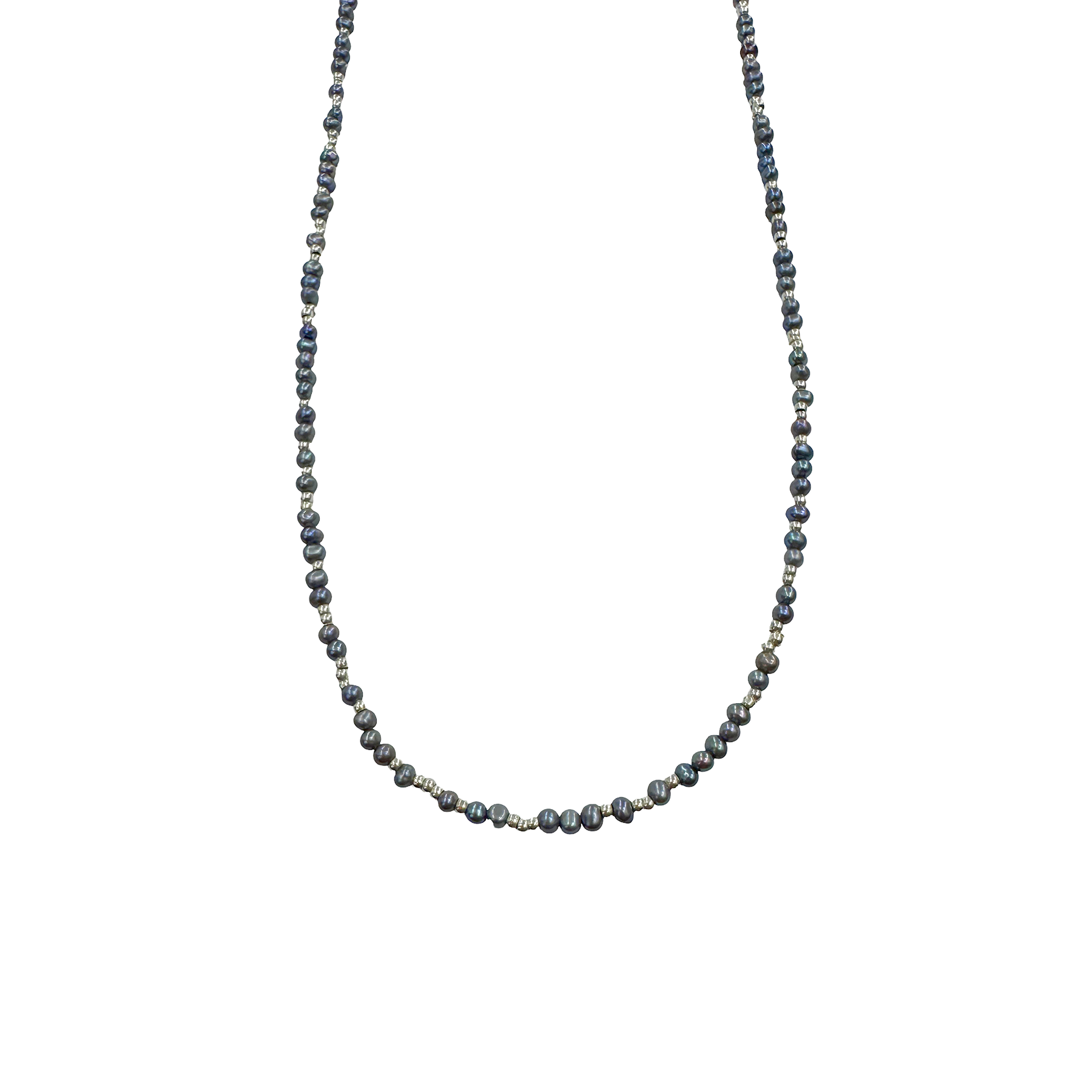 Tahitian pearls with Sterling Silver round beads hand strung necklace with a sterling silver toggle clasp, 19" long by Legion Designs