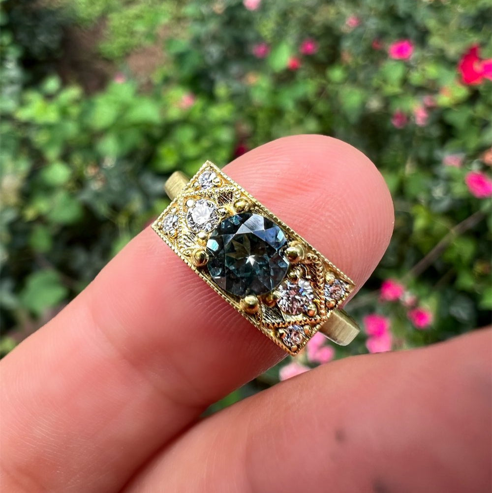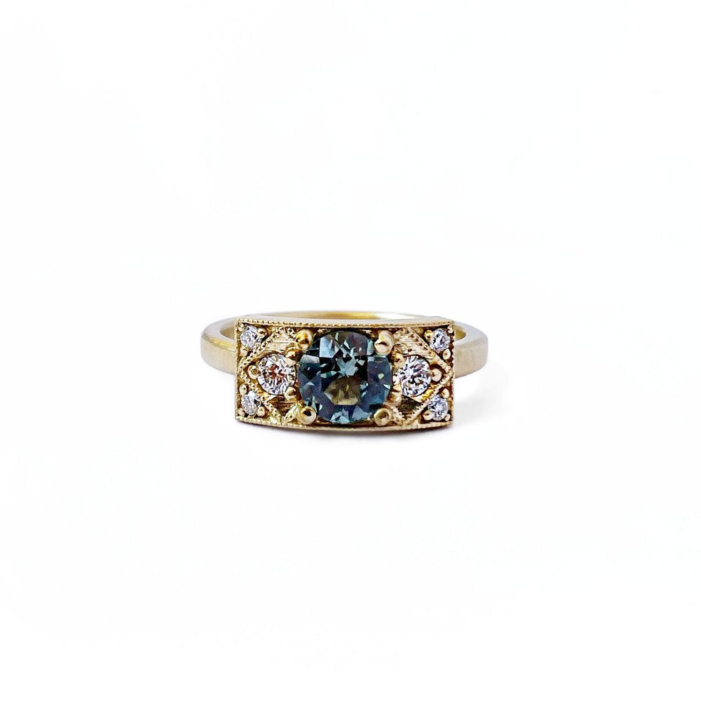 Vintage Inspired Montana Sapphire & Diamond Ring