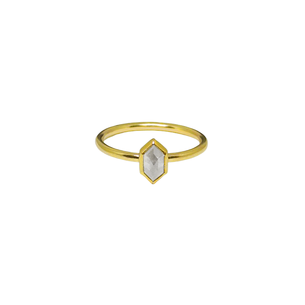 18k yellow gold ring with 22k bezel set Hexagon shape .60ct Icy Diamond.