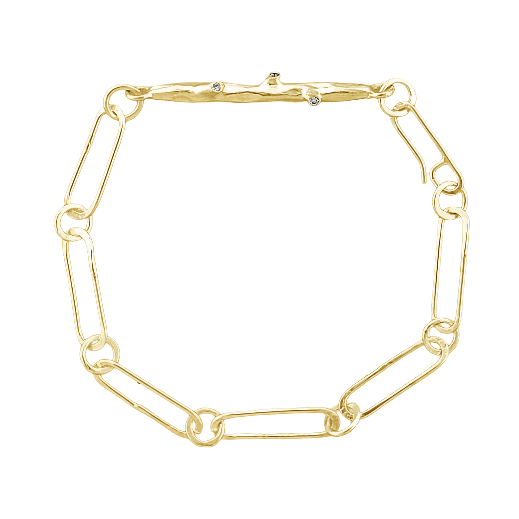 Twig bracelet with white diamonds in 14k yellow gold by Cristello & Co.