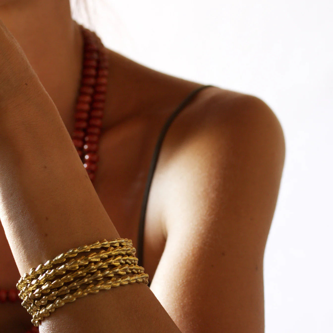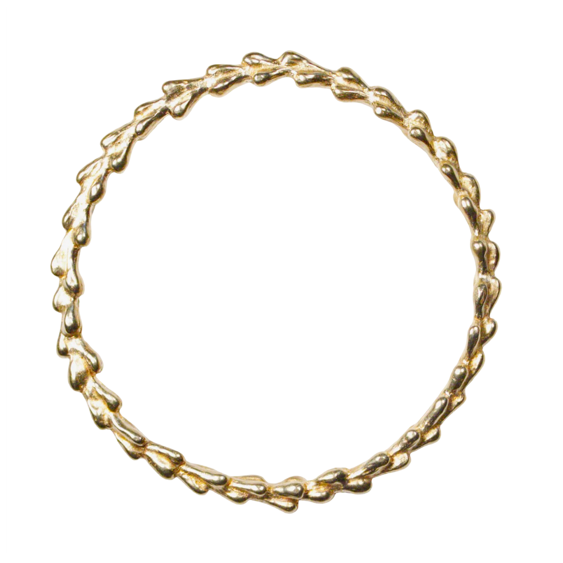 Using ancient and modern techniques, the willow-inspired design was hand-carved in wax and then cast. The brass has a light golden yellow color and ages beautifully. The highly polished edges add a nice contrast to the textured carving. A simple, yet striking silhouette, this piece will add dimension and variation to your favorite bracelet stack.